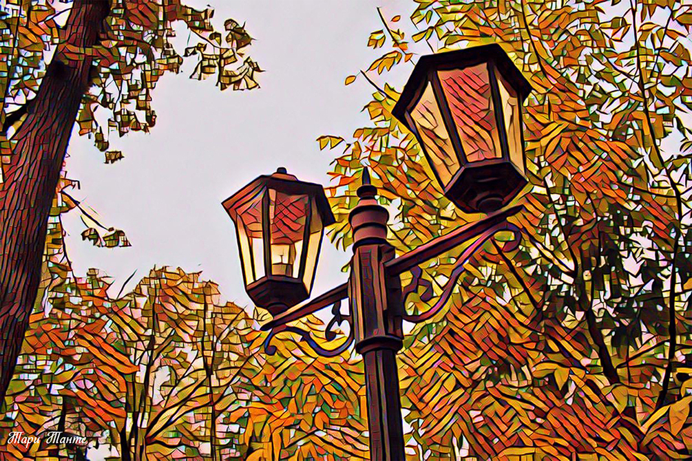 This is a photo of a vintage lantern, processed to look like stained glass.